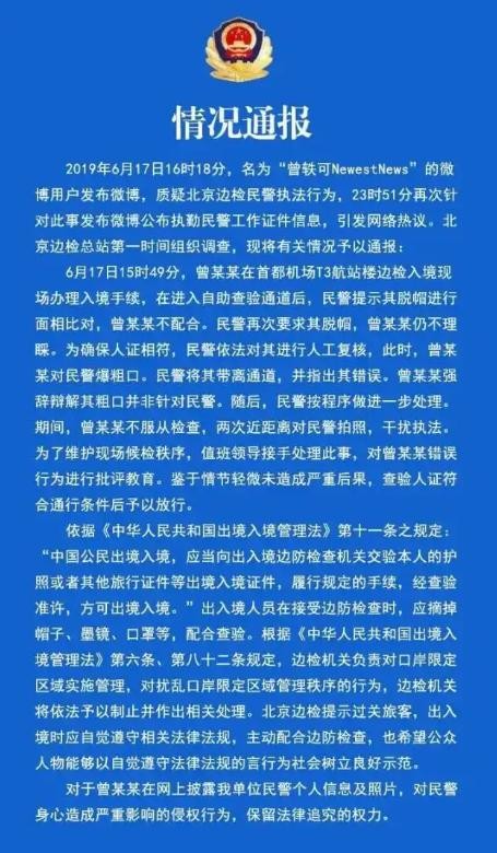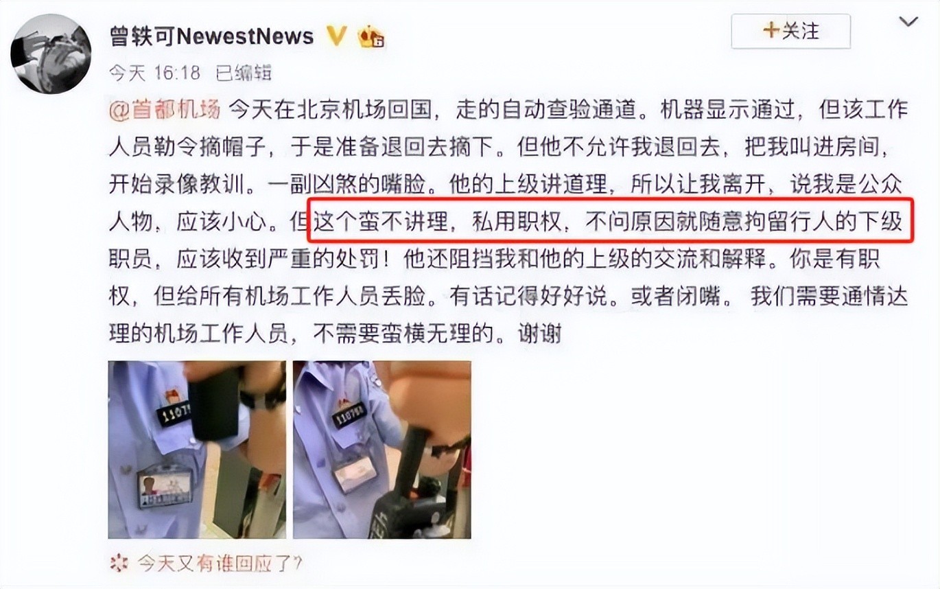 事情发生在19年6月,当时曾轶可在北京机场安检时与工作人员发生了冲突,一般这种事情也就是一会就过去了,但是她却将这件事情发在了网上,称自己在北京首都机场入境时遭到了工作人员的 “刁难”。