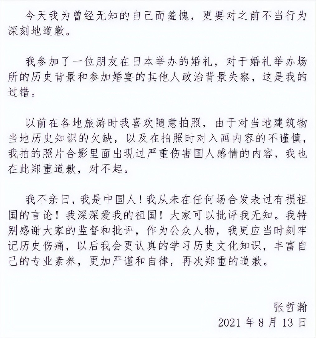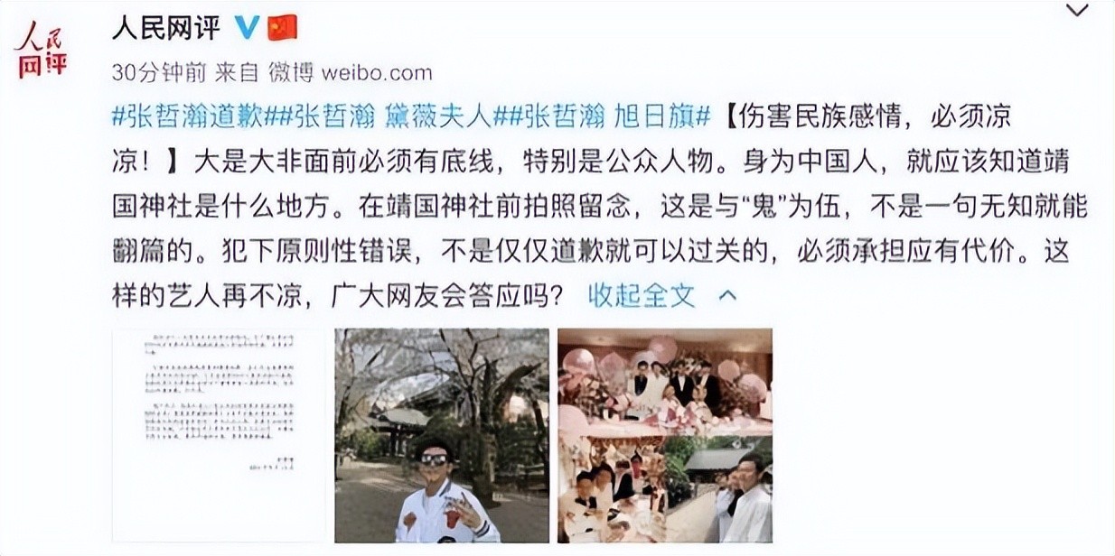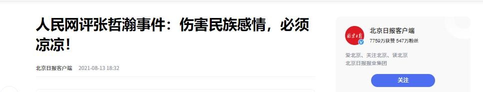 人民网评张哲瀚事件:伤害民族感情,必须凉凉! 北京日报客户端2021-08-13