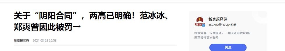关于“阴阳合同”,两高已明确!范冰冰、郑爽曾因此被罚→ 新京报官微2024-03-19