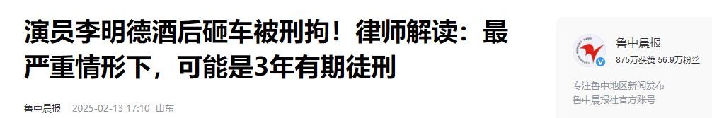 鲁中晨报-演员李明德酒后砸车被刑拘!律师解读:最严重情形下,可能是3年有期徒刑