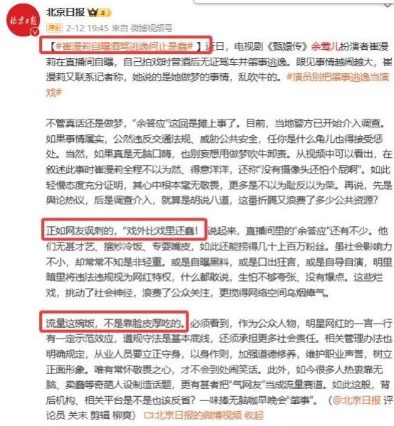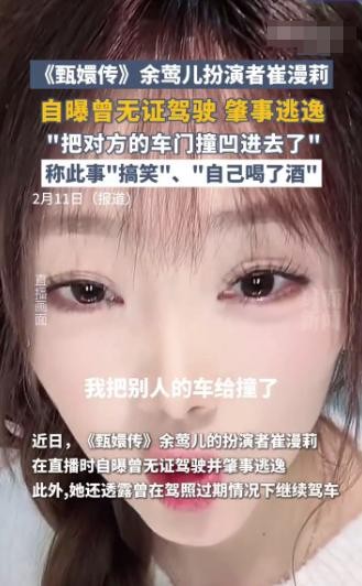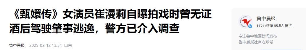 鲁中晨报-《甄嬛传》女演员崔漫莉自曝拍戏时曾无证酒后驾驶肇事逃逸,警方已介入调查