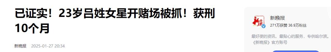 新晚报-已证实!23岁吕姓女星开赌场被抓!获刑10个月