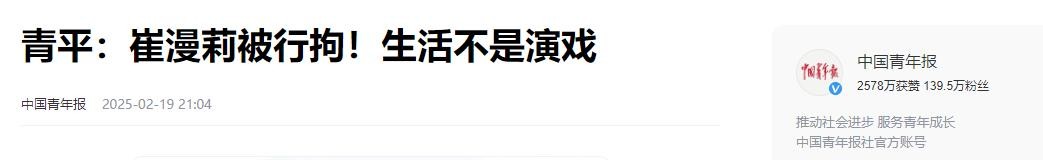 中国青年报-青平:崔漫莉被行拘!生活不是演戏