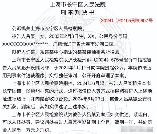 在随后的审判中,法院认定吕相宜构成开设赌场罪,考虑到她的认罪态度和案情轻重,最终判处其有期徒刑十个月,缓刑一年,并处罚金一万元。