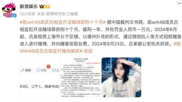 她就是前SNH48成员吕相宜,这个曾经年轻貌美、前途无量的女孩,却在23岁的年纪就因开设赌场罪被判入狱,令人扼腕叹息。