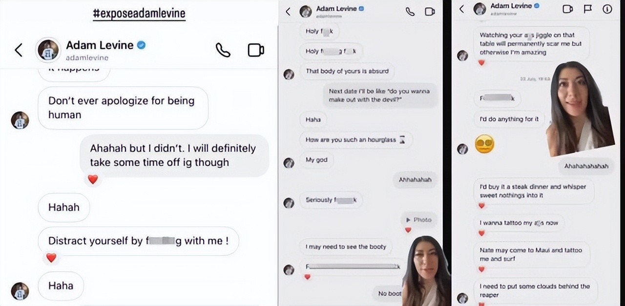 这件事发生后不久,出现了一个话题叫做“Expose Adam Levine”(揭露亚当莱文),然后...又有两个人发出了他们与亚当的聊天记录。