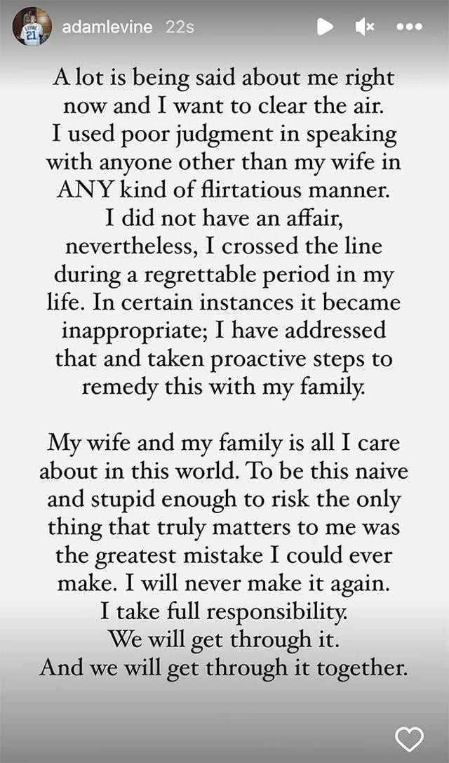 他说“我没有外遇,但确实越界了...我保证不会再发生同样的事了...会和我的家人一起渡过难关。”