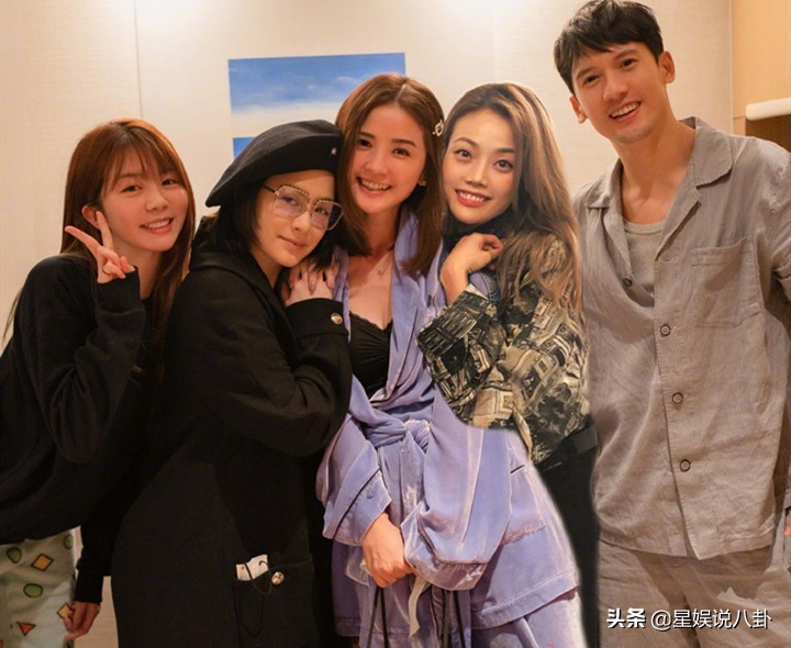 阿娇除了晒出与阿Sa的单独亲密照外,还晒出了一张5人的集体照,只不过该照片却因为容祖儿的“特殊”而被意外抢镜。照片中,阿娇和阿Sa两人妆容不变,两人相互依偎十分亲密,位于两边的男女虽然男俊女俏,但至少不会有丝毫的违和感,反观位于阿Sa旁边的容祖儿,却宛如仙女下凡般被一束光照亮,如果不是变形的下身,暴露了照片的真实性是P图,或许很多人都被“照骗”了。