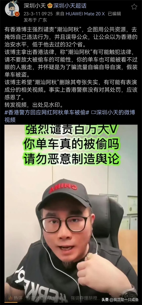 昨天有香港博主质疑阿秋炒作,怀疑是阿秋自导自演骗流量,说香港没有处罚阿秋,他应该感恩。 现在香港警方给阿秋正名了,的确不是炒作。