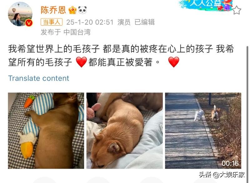 都知道陈乔恩很喜欢小动物,不但家里养了好几只小狗,甚至也多次在社交平台为小动物发声!结果没想到这次她为了网红小狗艾特发声,居然意外遭到了炮轰?