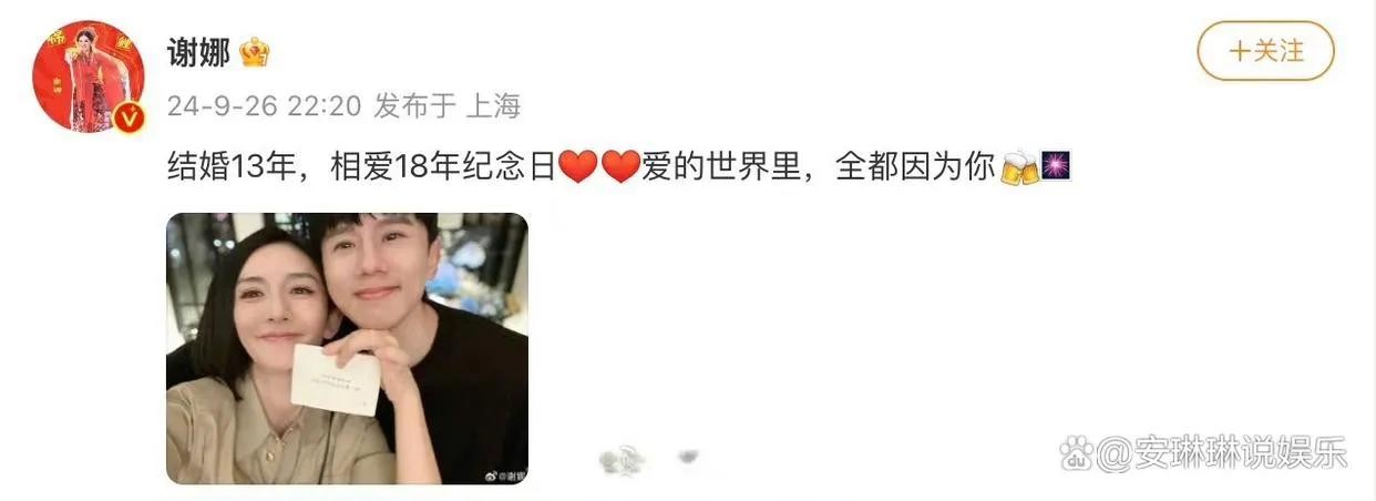 9月26日,对于张杰和谢娜来说,是一个特别的日子。他们纪念了结婚整整13周年。作为娱乐圈的一对模范夫妻,张杰在社交媒体上分享了一张与谢娜的甜蜜合照,表白道:“纪念我俩结婚十三年。让爱,继续蔓延❤️。”而谢娜也回应,发文说:“结婚13年,相爱18年纪念日❤️❤️爱的世界里,全都因为你。”这一刻,幸福洋溢在每一个字里,让人不禁感慨爱情的美好。