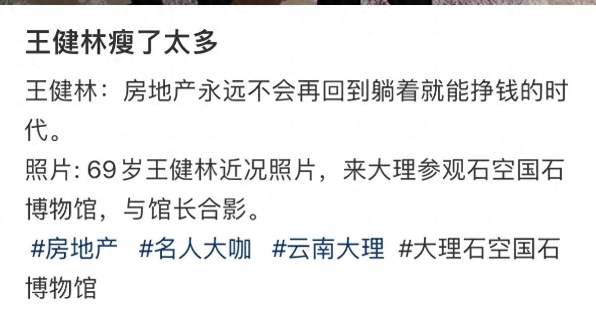 近日,有人晒出了王健林的最新照片,他去大理参观石空国石博物馆时,与馆长留下的合影。