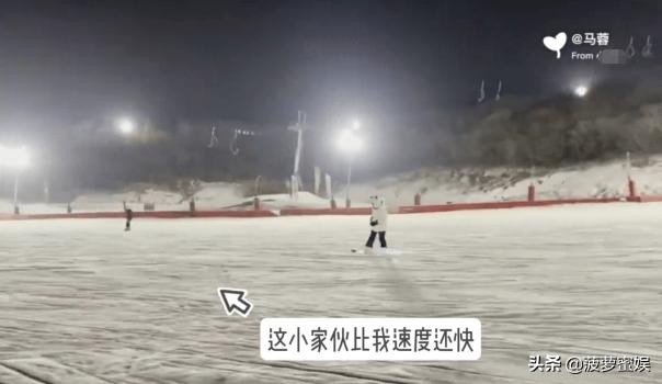 马荣和王宝强10岁的儿子王子豪,身穿一件黑色的滑雪服,滑行顺畅自然,速度堪比马蓉,运动细胞爆棚。