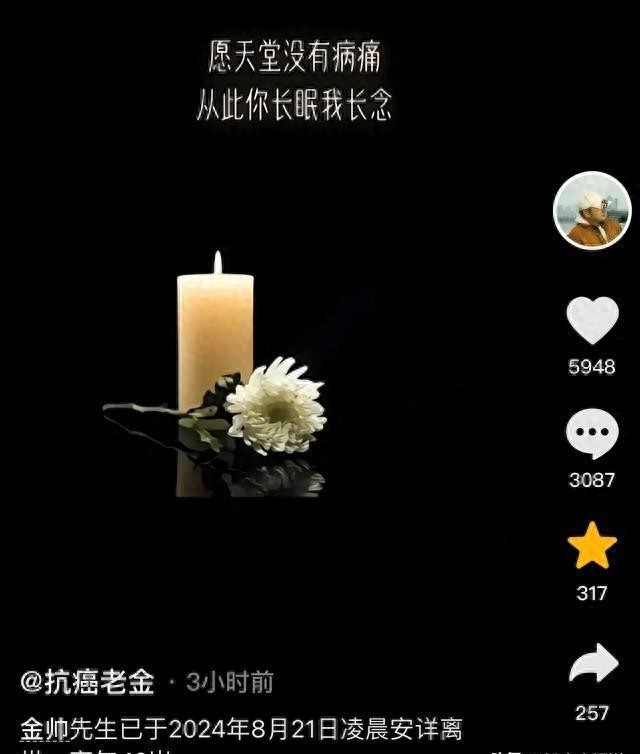 那个叫"抗癌老金"的网红,前几天走了,才42岁啊!这事儿可真是让人心里头堵得慌。