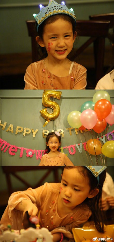 侨报星闻【黄磊晒照为小女儿庆生,5岁多妹穿公主裙露甜笑】12月20日晚,黄磊在微博晒出一张为小女儿多妹庆祝5岁生日的照片,还写道:“我的宝贝妹妹生日快乐,爸爸永远爱你”,一句“爸爸永远爱你”也是将黄老师的“女儿奴”一面展露无疑啊。照片中小寿星多妹戴着mini生日帽,身穿浅色连衣裙对着镜头开心比出“5”的手势。配上身后的生日墙,多妹就像童话里走出来的公主,又美又可爱。