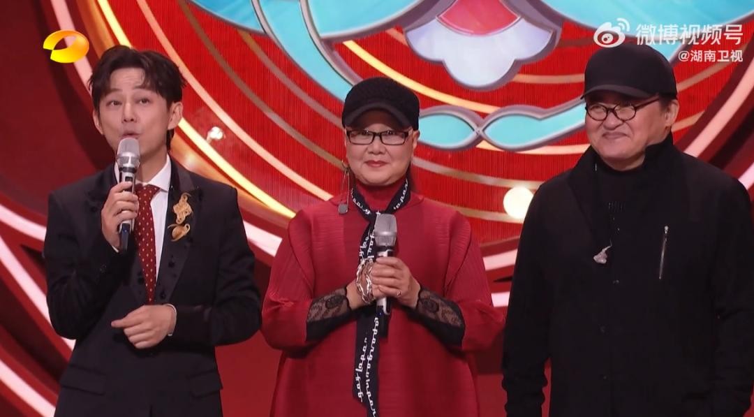 现场,满61岁的刘欢穿一身黑衣戴着帽子,声音洪亮中气十足;卢璐穿红衣满脸笑容,她还用湖南话和大家拜年打招呼。
