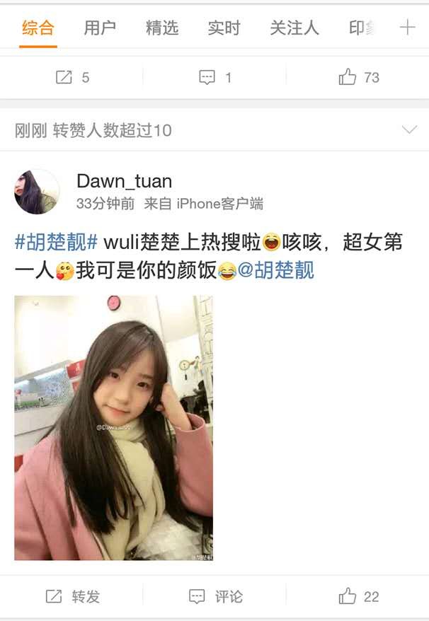 “超女第一人”网红楚楚上微博热搜榜第一名