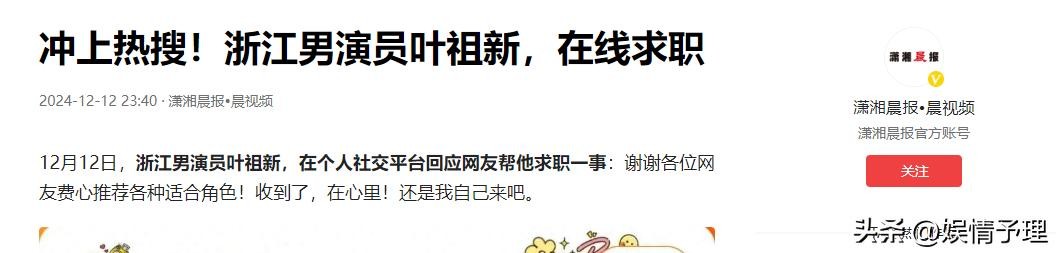 这一次有了热度之后,浙江籍男演员叶祖新也是连忙抓住机会,在社交平台上发出求职信号: