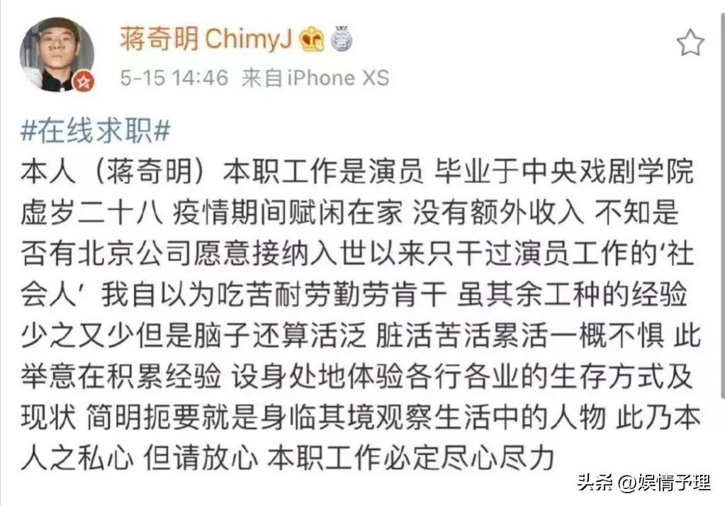 但你知道吗?像叶祖新这样公开求职的明星,远不在少数。