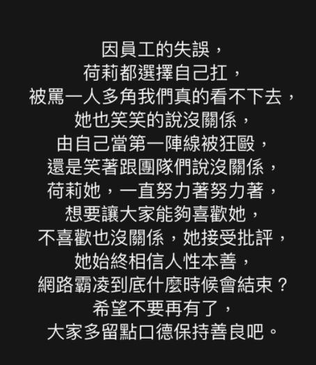 明明是员工的失误,但荷莉都选择自己扛,被骂之后她也一直笑着跟我们说没关系。