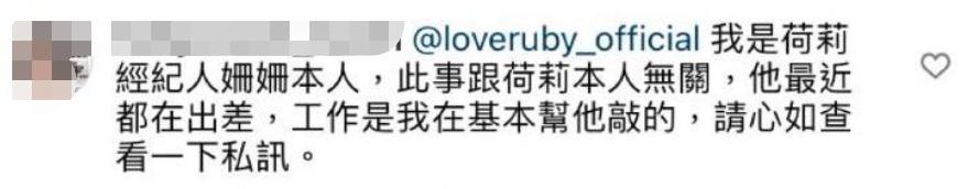 一个小号立刻出现在林心如声明的评论区,声称自己就是经纪人姗姗,荷莉对所有的事情都不知情。