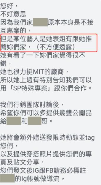 结果她却以有艺人亲戚的推荐为由,跟人家狮子大开口,要了一百多双袜子。