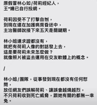 然后又发了篇长文,通篇都在指责林心如害她遭受网暴,导致她自杀。