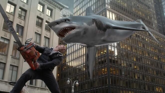 《鲨卷风》最开始是2013年在美国Syfy频道播出的电视电影,主打一个五毛特效和大开脑洞的剧情,譬如飓风带来的鲨鱼从天而降。这个系列一口气拍了6部,甚至还涉及到时间穿越、纳粹、恐龙、骑士和诺亚方舟……
