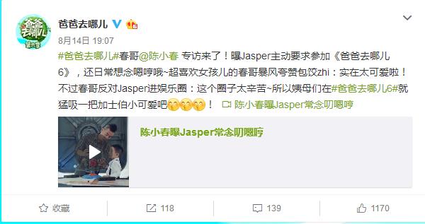 很多网友说Jasper之所以想参加《爸爸去哪儿》第六季,是因为想念第五季的伙伴们了,以为这一集也会是同样的小伙伴,没想到来到一看全是不认识的,和想象的不太一样,但是既然来了,哭着也要把剩下的路程走完。