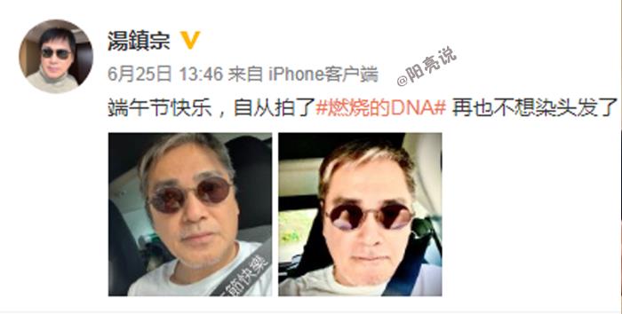在汤镇宗的个人社交平台上曾这样发文:再也不想染头发了。原来汤镇宗为了保持年轻一直在染发。