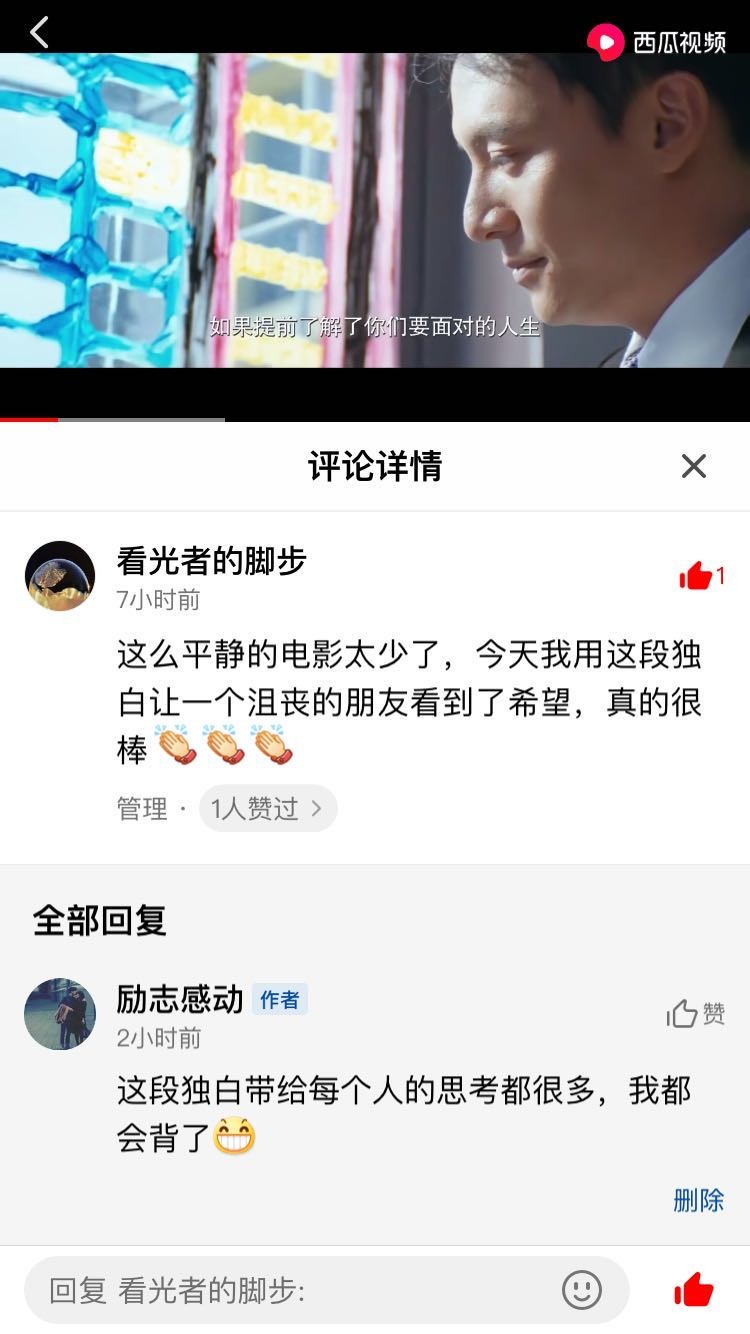 今天有网友留言看了这个视频让沮丧的朋友看到了希望,我心里感觉暖暖的。能给周围的人带来正能量,这也是我做“励志感动”的初衷。这里,我将这段经典独白再次带给大家: