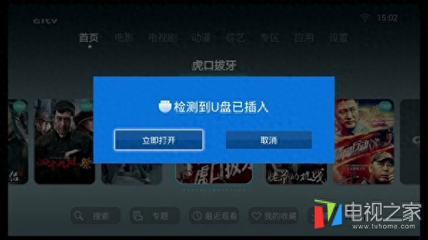 2、将U盘插到智能电视的USB接口上。