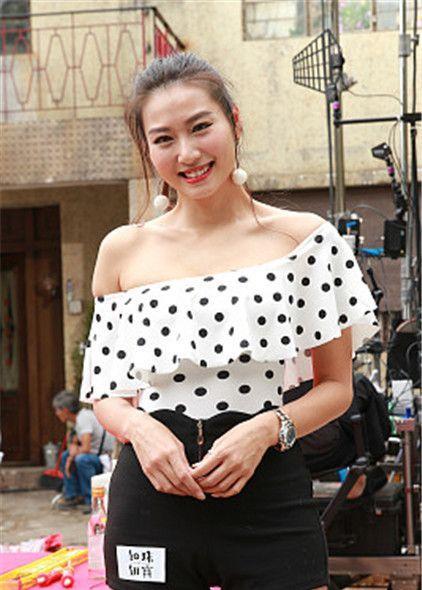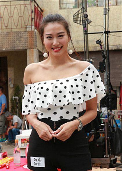庄端儿现身电影《如珠如宝》开镜拜神 波点上衣搭配短裤秀美腿