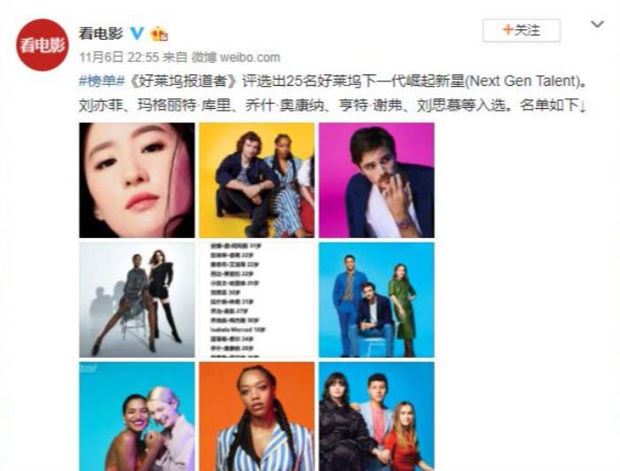 已经连续两三个月没有露面的刘亦菲,近日迎来了一个好消息,被美国娱乐圈顶级杂志《好莱坞报道者》评选为好莱坞下一代崛起新星(Next Gen Talent),在同样入选的25位影星中,她是唯一一位亚洲/亚裔华人女星,星光璀璨,与有荣焉。