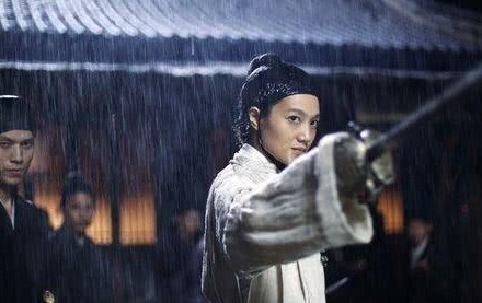 她所用的剑因为杯状护手,特征明显,虽为西洋剑,但放在整个片子里也没有违和感。这种欧洲花式剑风行时,去中世纪已久。原本适合战场的双手剑等厚重兵器(类似《指环王》那样式儿的)不再适合宫廷和贵族使用。西班牙人把剑改为轻薄的单手剑,适合私人械斗,但面对中式刀总是难以格架。西洋剑重割、挑、刺,专破锁子甲。