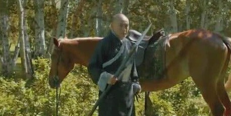 也有人说是雁翎刀,但老大的刀柄略长,但从刀身形状来看,还是近似于斩马刀。雁翅刀脱胎自宋代以来的平头腰刀,顾名思义刀形开展如雁翅,棱角分明。刀头厚重,利于砍劈。电影中这把刀的柄可以伸缩,一秒变成双手握持的长兵器真实的官制兵器不会有这种设计,因为势必会影响性能,这是为了电影设定更花哨。但是历史上曾经出现类似的一种兵器,即是朴刀,以西瓜刀大小的单刀套在木棍上就可以当长兵器用,这是宋元时对兵器禁绝的变通之法,梁山好汉都会用这个。
