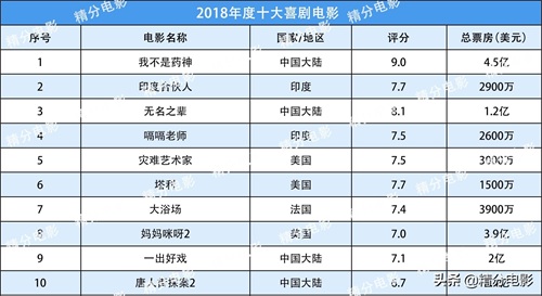 2018年,国产喜剧电影佳片频出,近十年来华语喜剧电影表现最好的一年,我不是药神强势登顶。