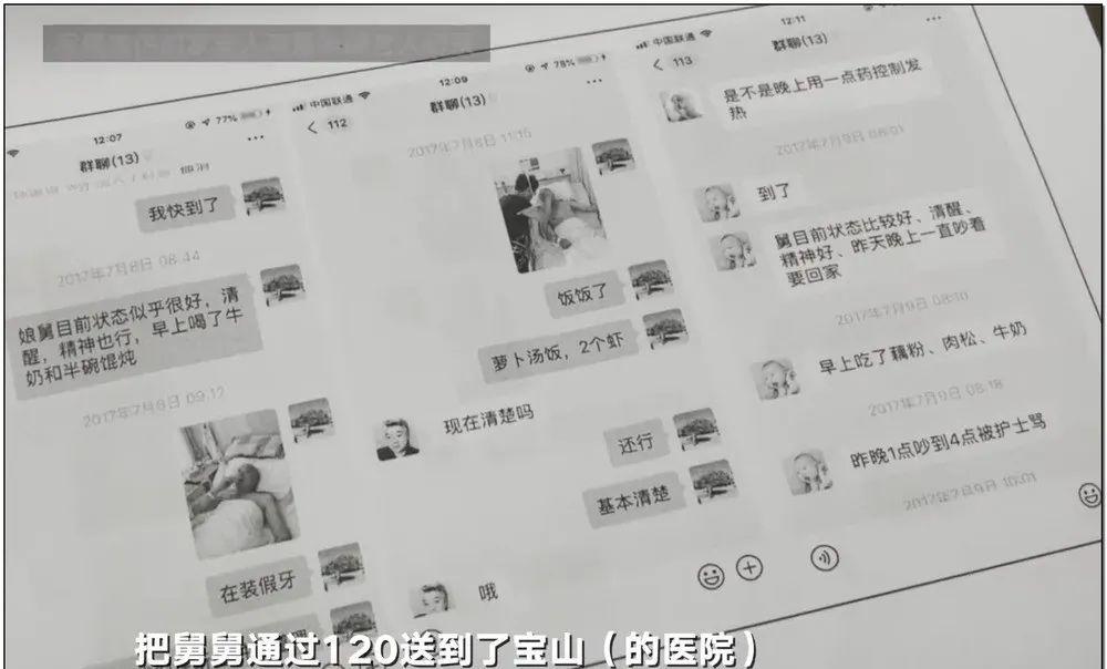在老人摔倒后,第一时间从外地赶到上海。