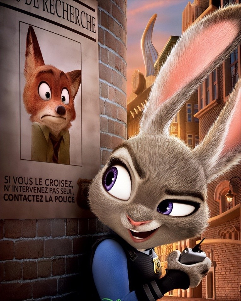 主人公朱迪·霍普斯(JudyHopps)是一只雌性兔子,她渴望成为一名警察,克服了众多困难,最终进入了动物城警察局。