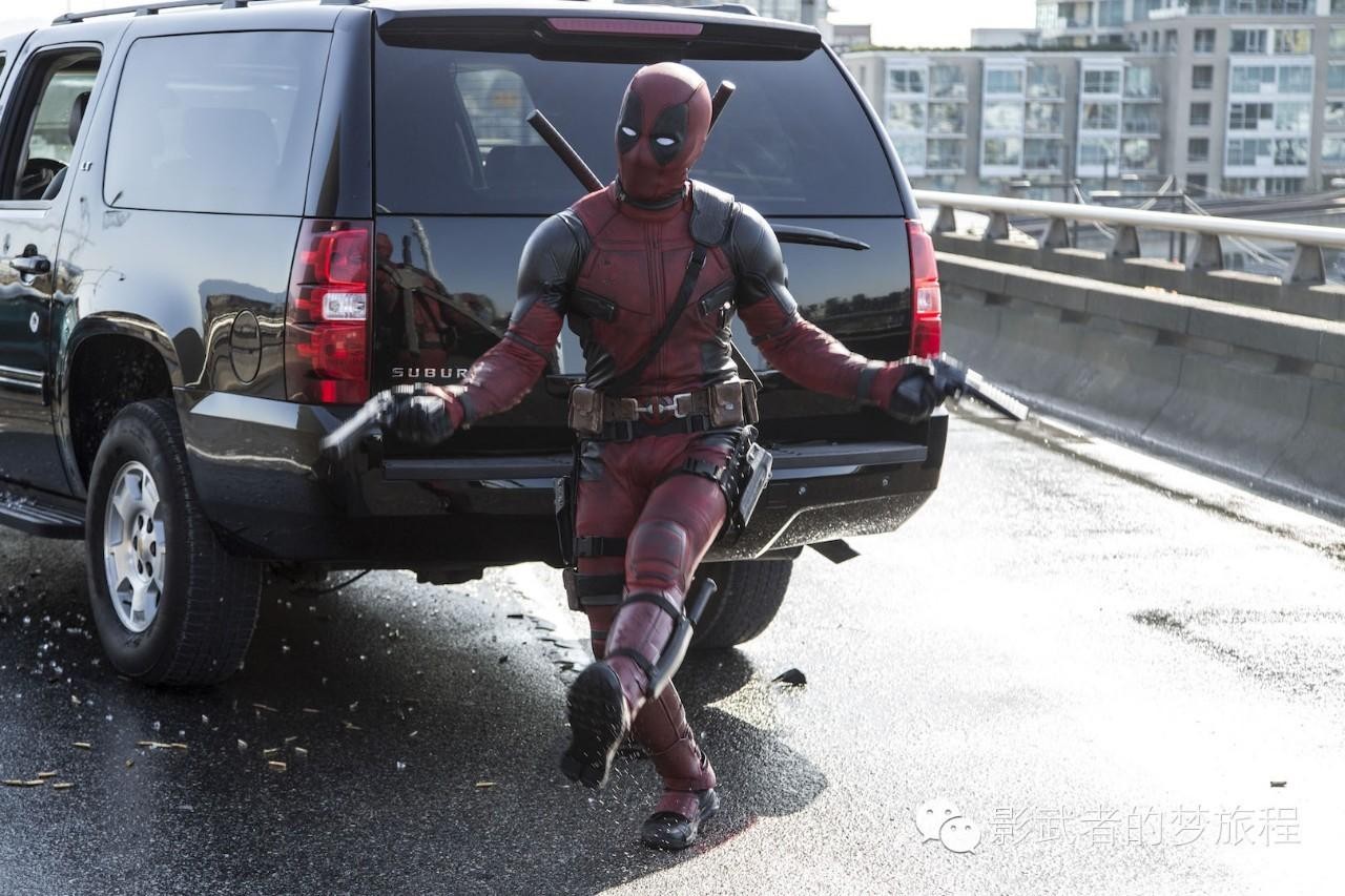 所以,有人干脆把本片比作是“超级英雄电影”界的《太子妃升职记》——既贱,且污,关键还穷!本片的“穷”是明摆着的:Deadpool根本没啥像样儿的装备,没有自己的专属交通工具(只能坐“霸王车”,而且还坐了两回),甚至连衣服都要自己缝、自己洗(出道儿时的蜘蛛侠也有过这么一出儿);至于打斗场面,除了最后一场“航母大战”稍显壮观外,其他桥段同其他超级英雄系列相比,简直就不值一提。据说,之所以Deadpool两场最出彩儿的打戏都把所有枪弹落在出租车上,是源于FOX公司的背信弃义——生生减掉了制作团队700多万美元的预算,剩下的钱就只够拍“武士刀”大战“冲锋枪”了。面对如此尴尬的预算,Deadpool也在片中狠狠地自嘲了一把——“这片子穷成这样,都没钱再请个‘X战警’了吧?”不过话说回来,虽然预算有限,但片中的动作戏份儿却毫不含糊,视觉效果也十分精致,几乎可以见到当下所有流行的摄影技巧。