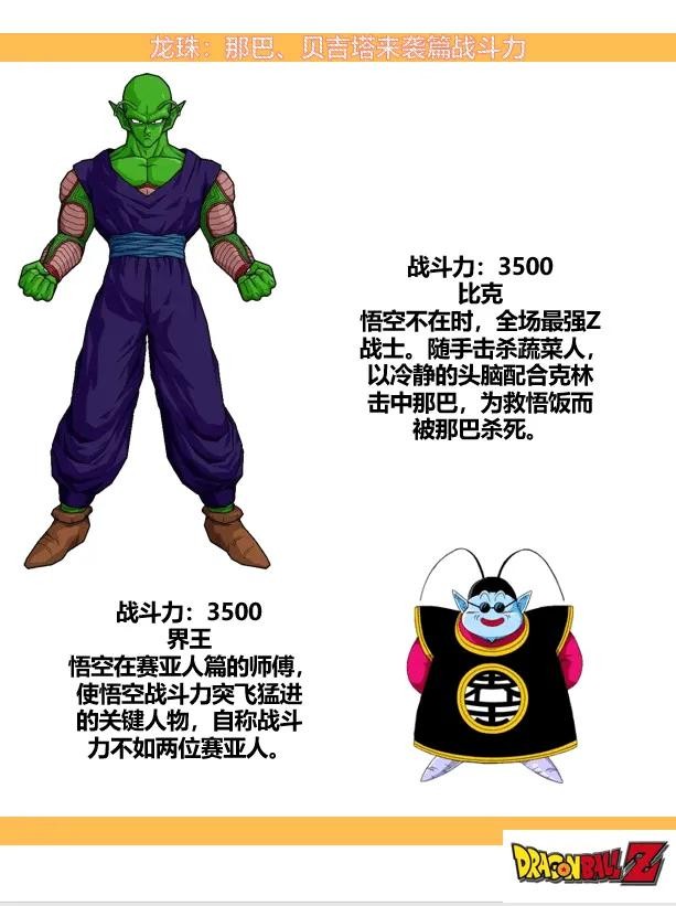 漫画原文可以看出那巴、贝吉塔都比界王强,那么界王战斗力也的确符合上面彩图的3500。