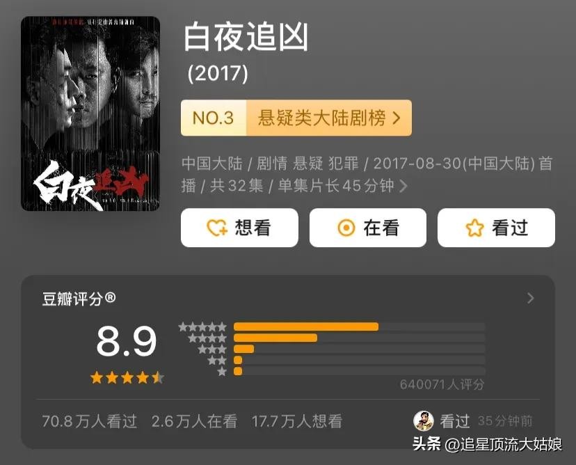 豆瓣评分最高的10部悬疑剧:漫长的季节第2 . 白夜追凶第4 . 开端第9