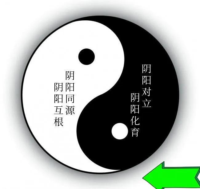 太极图白色部分表示阳,黑色部分表示阴。意为阳中有阴,阴中有阳,负阴抱阳是万物的基本属性;黑色鱼头和白色鱼尾连接点表示阴达到极点就是阳的开始,阴极复阳,阳极复阴,表示物极必反的基本规律。