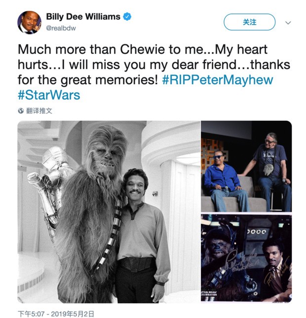 《星球大战》的“楚巴卡”去世了,粉丝:原力与你同在
