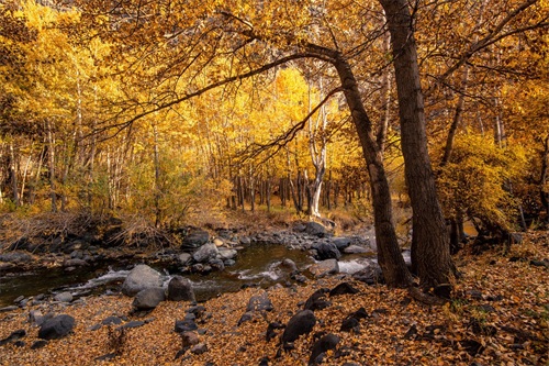 3、大西沟:河流曲折蜿蜒,峰峦重叠,野果树众多,达到了60余种,成熟之时鲜艳美观。