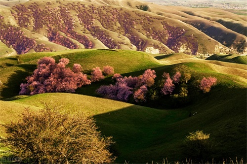 1、甘沟菊花台:位于甘沟乡,是片山间草甸,每年的4~10月,这里都会开满野菊花,芳香袭人。金黄的菊花,引蜂蝶纷飞,密林之间不时闪现出没的马鹿,一派典型的天山草原风光。