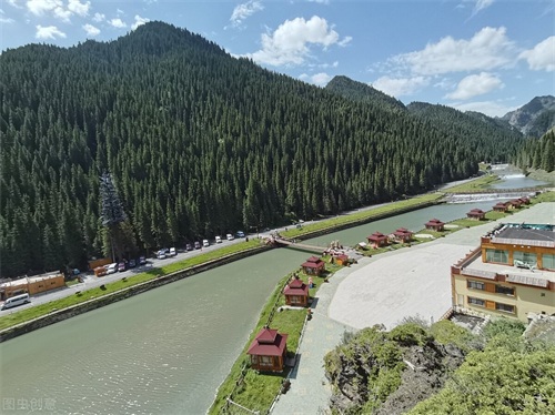 2、照壁山:是个探险和原生态旅游的好地方,这里密布生长着天山云杉,主山三面环水,只留一面平壁高高立着,如同一面镜子。这里有一条天然形成的十余千米的著名水峡,环境极为幽静。