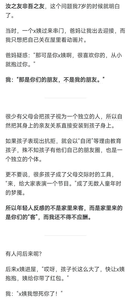 小时候,过年过节家里都会来人串门,父母都会让孩子出来叫叔叔阿姨,端茶倒水,甚至表演个才艺,也说不上多么反感。