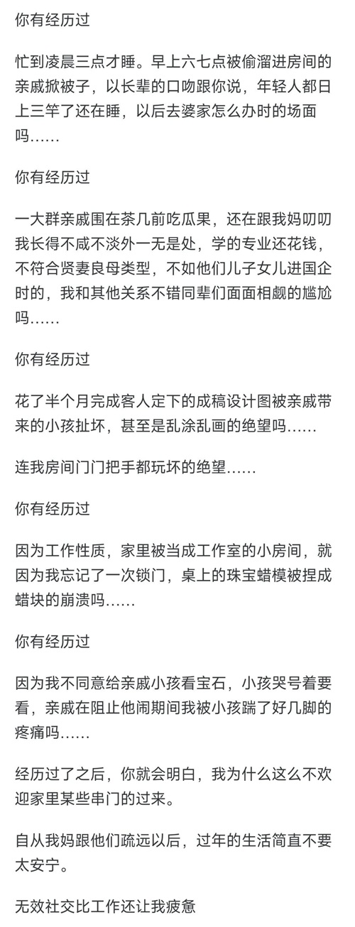 还有就是每次家里来亲戚总喜欢讨论自家孩子的隐私。简直想翻白眼。