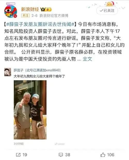 “中国天使投资第一人”薛蛮子去世?知情人士和本人朋友圈齐辟谣